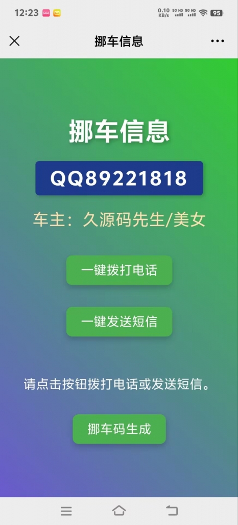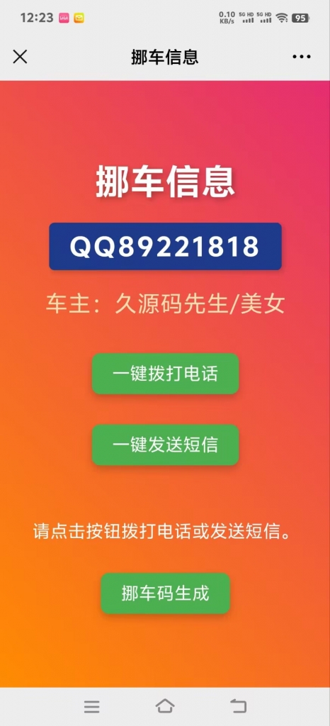 自动键入挪车短信内容,二维码可以去美化打印出来,纯html可以用CF免费永久不限请求托管