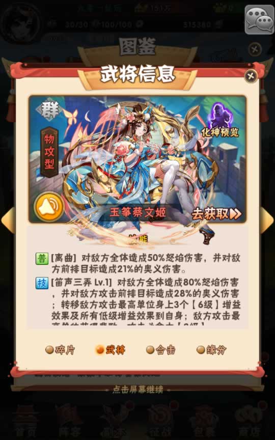 新增第三代焰金武将玉筝蔡文姬、神威马超、灵变张郃、屠雄张飞和大量皮肤等