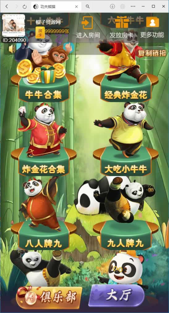 为加速网站,所有图片进行了优化处理,所以并不是高清,实际中游戏与网站本身画面是高清的,部分源码中打包有高清展示图片。棋牌源码网 » P364【最新UI大圣娱乐系列H5娱乐游戏–功夫熊猫】全套完整房卡大厅源码+搭建教程