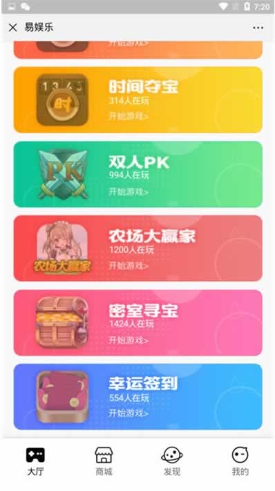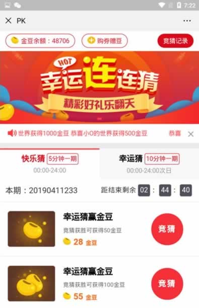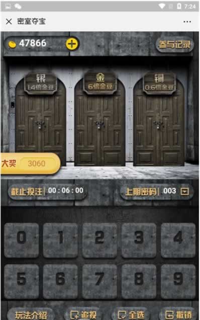 游戏含有:尾号夺宝 ,时间夺宝, 密室寻宝, 双人PK,(类似CP),农场大赢家, 幸运签到。