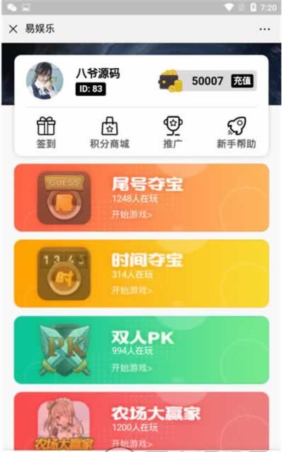 为加速网站,所有图片进行了优化处理,所以并不是高清,实际中游戏与网站本身画面是高清的,部分源码中打包有高清展示图片。棋牌源码网 » P370【H5夺宝】游戏源码/尾号时间+密室夺宝+双人PK+农场大赢家+幸运签到大集合
