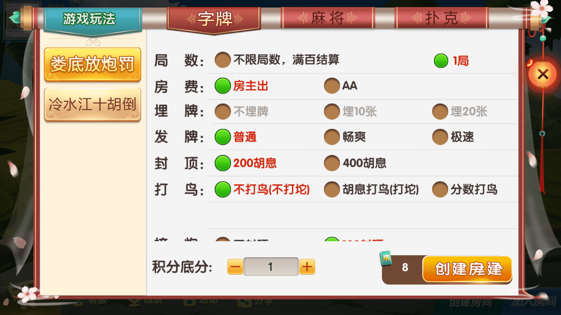 七星娄底麻雀扑克字牌房卡端9子游戏+亲友圈乐豆模式+比赛模式+双端