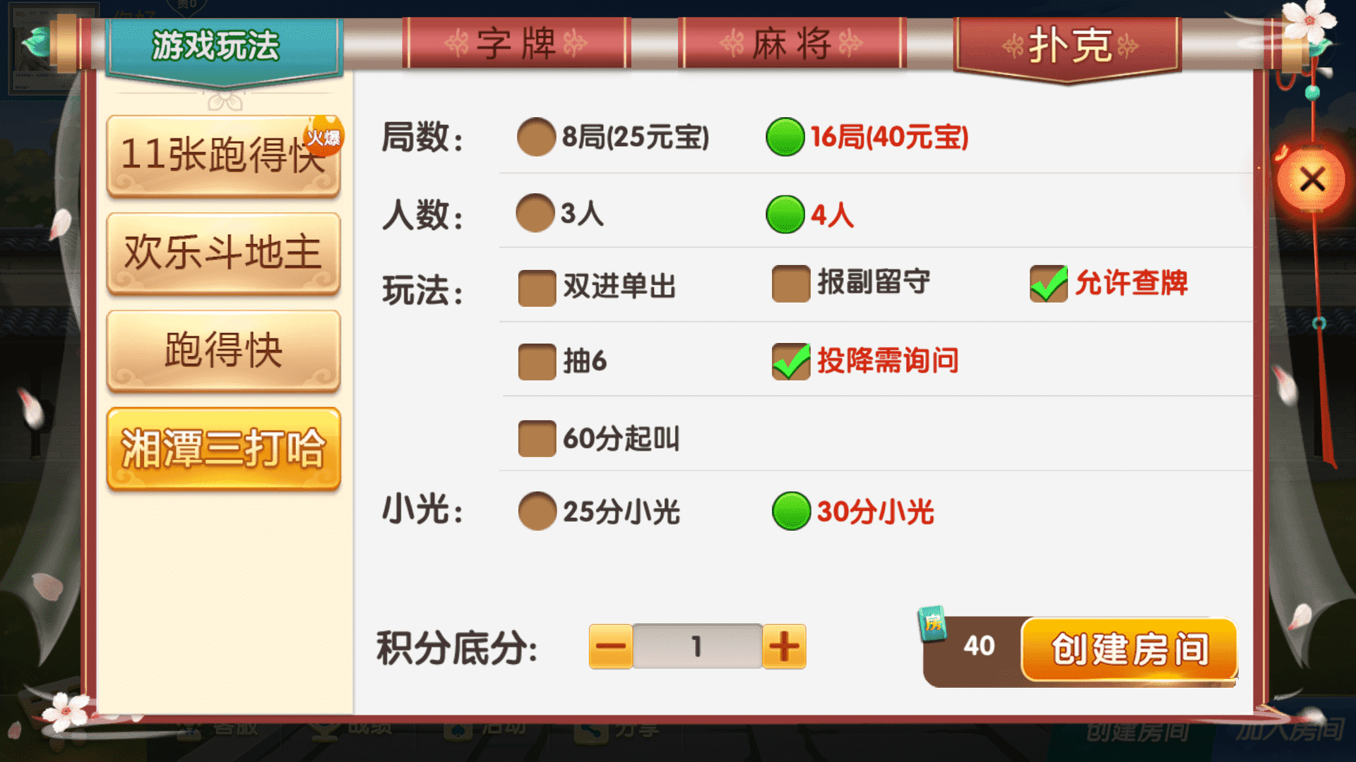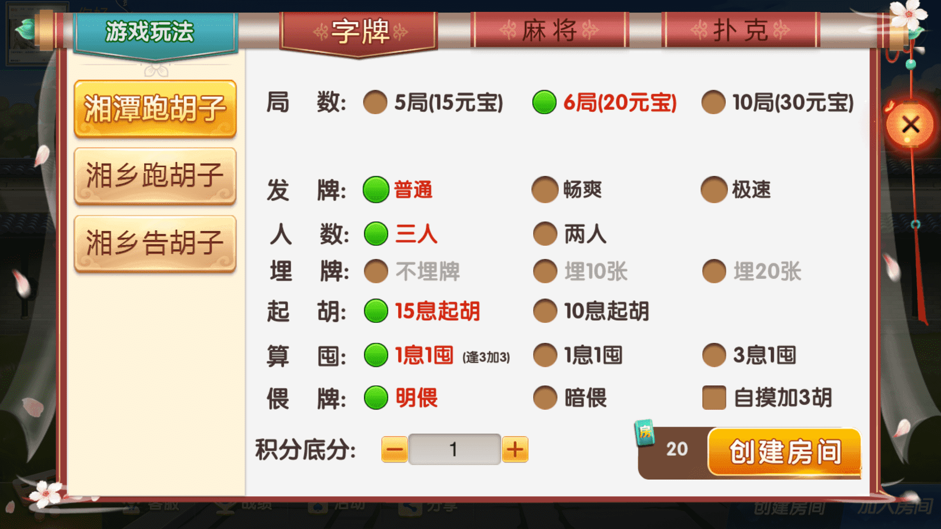 字牌系列:湘潭跑胡子,湘乡跑胡子,湘乡告胡子。