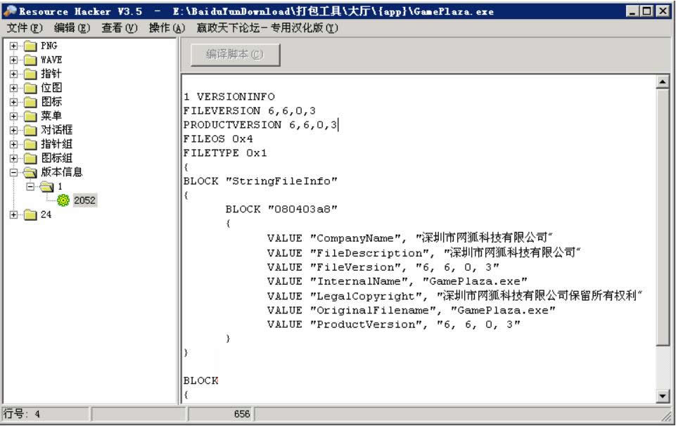 该工具可用来修改棋牌游戏客户端的版权信息,项目名称包括(产品版本、公司、内部名称、文件版本、语言、源文件名)