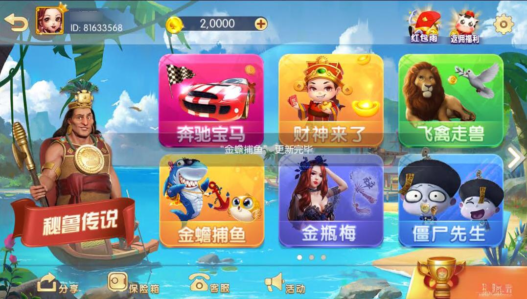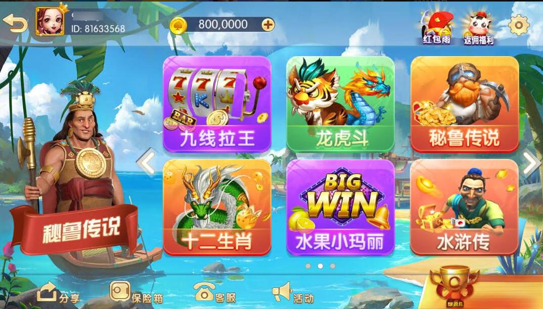 包含游戏:金蟾捕鱼 奔驰宝马 财神来了 飞禽走兽 金瓶梅 僵尸先生 森林舞会 跳高高 新秘鲁传说 月光宝盒 九线拉王 龙虎斗 秘鲁传说 水浒传 十二生肖 水果小玛丽