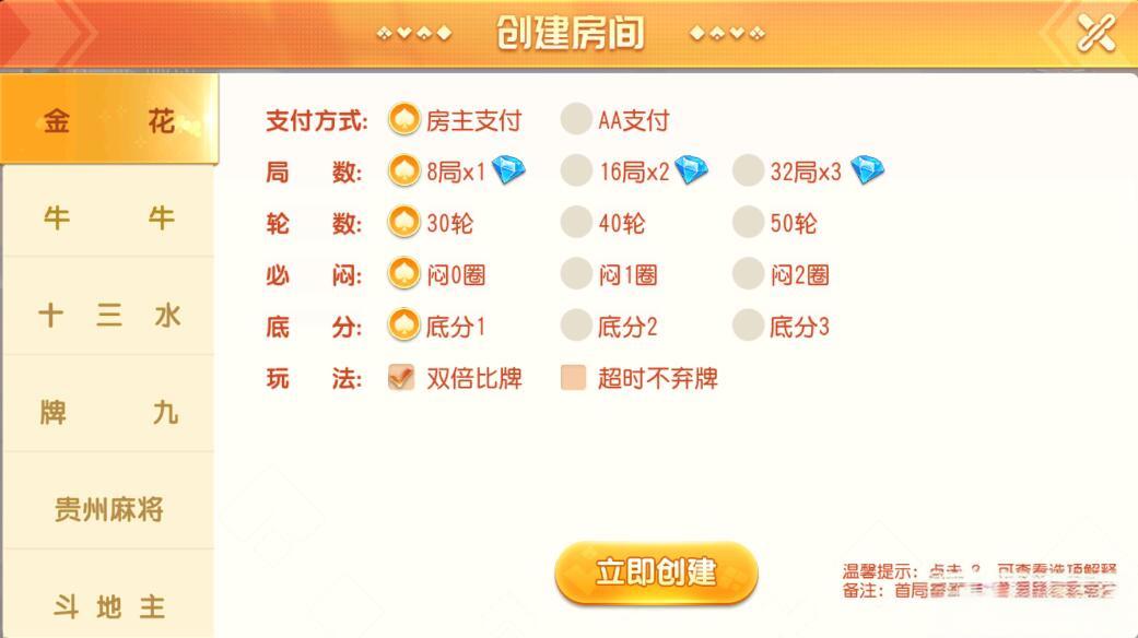 包含游戏:柞金华、牛妞、十三水、牌酒、贵州麻酱、斗地猪、三公、跑得快、三加一、填大坑、五十K、跑胡子、红中麻酱、血战麻酱