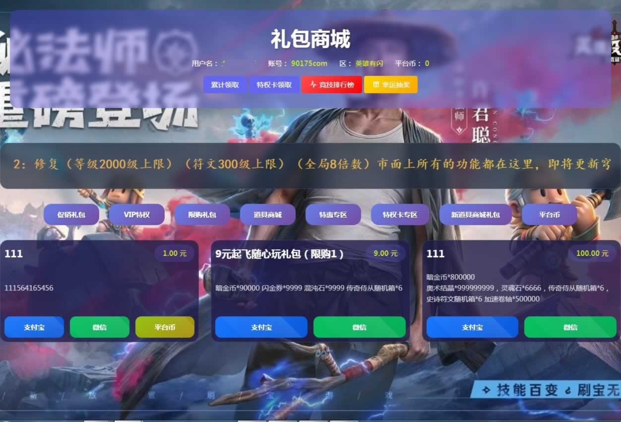 为加速网站,所有图片进行了优化处理,所以并不是高清,实际中游戏与网站本身画面是高清的,部分源码中打包有高清展示图片。棋牌源码网 » Y397【英雄有傘法师双角色8倍速100级祝福版】放置RPG刷宝手游Linux本地学习手工服务端教程