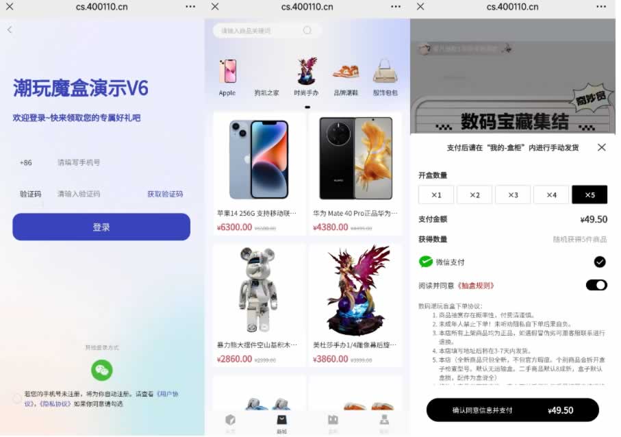 为加速网站,所有图片进行了优化处理,所以并不是高清,实际中游戏与网站本身画面是高清的,部分源码中打包有高清展示图片。棋牌源码网 » Q452–奇妙赏盲盒源码 高仿百度网盘盲盒 – Uniapp前端_无限回调