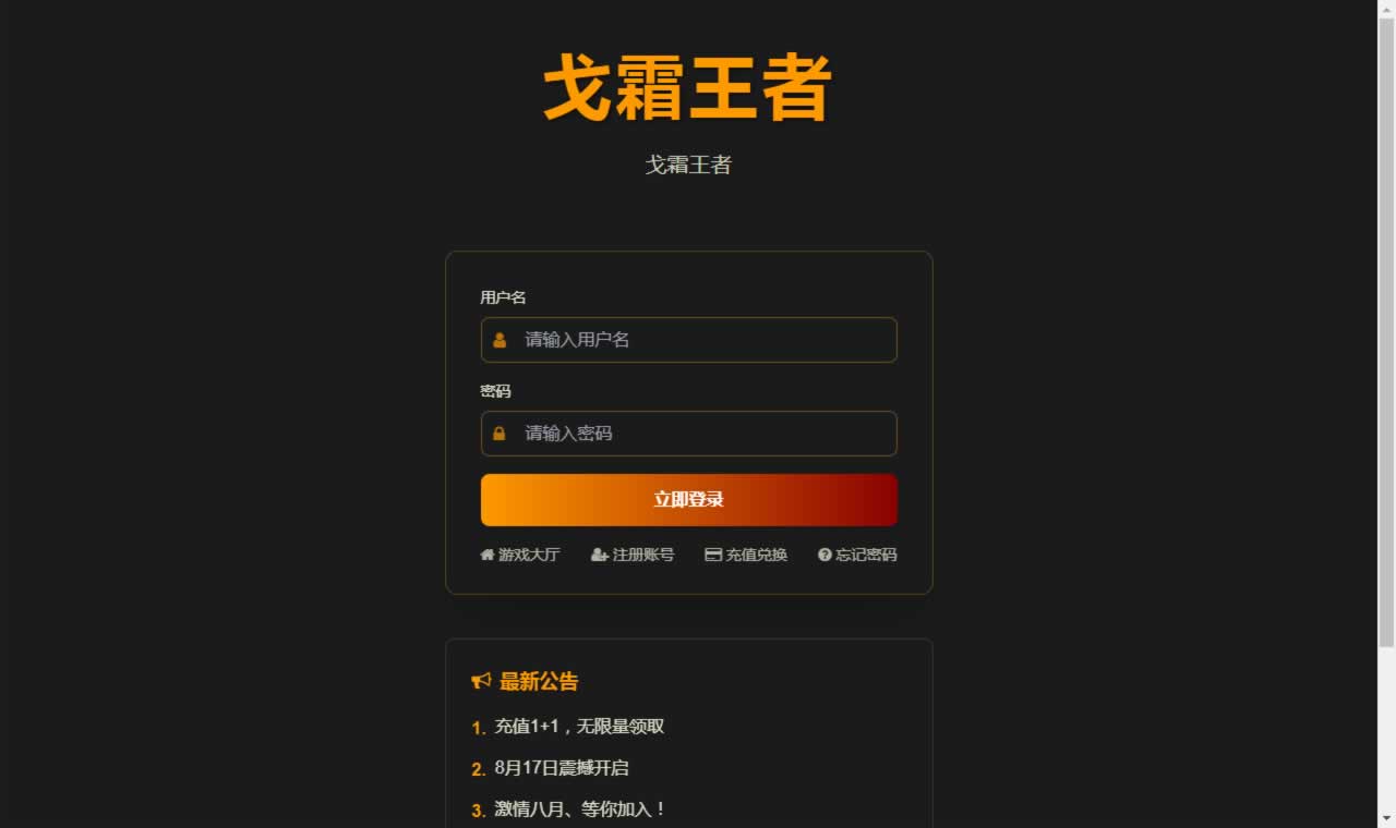为加速网站,所有图片进行了优化处理,所以并不是高清,实际中游戏与网站本身画面是高清的,部分源码中打包有高清展示图片。棋牌源码网 » Y414【战魂三国之戈霜王者】网页策略游戏2025整理Win一键即玩服务端+教程