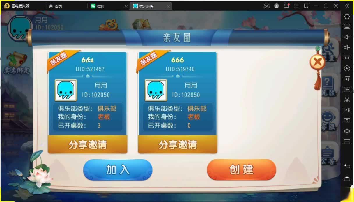 游戏就4个,杭州绍兴麻将,十三水,双扣,牛妞,带有简单的俱乐部类型的亲友圈。