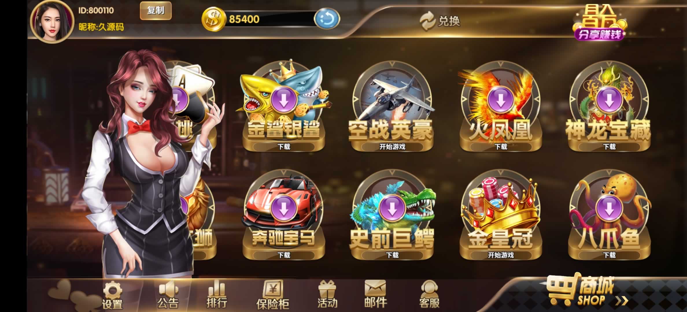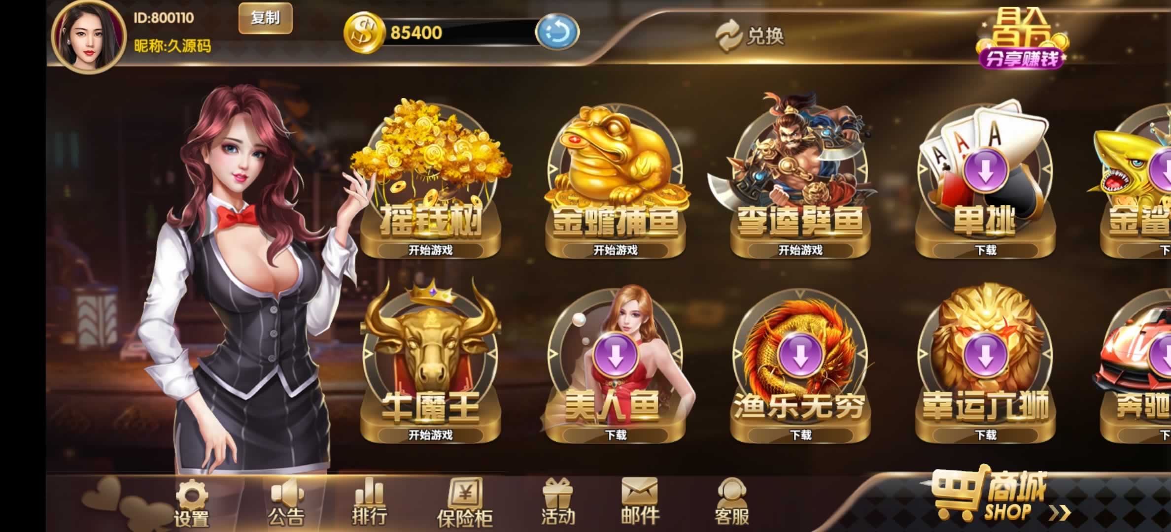 包含游戏:摇钱树,金蟾捕鱼,李逵劈鱼,单挑,牛魔王,美人鱼,渔乐无穷,幸运六狮,单挑(ATT连环炮)金鲨银鲨,空战英豪,火凤凰,神龙宝藏,奔驰宝马,史前巨鳄,金皇冠,八爪鱼。