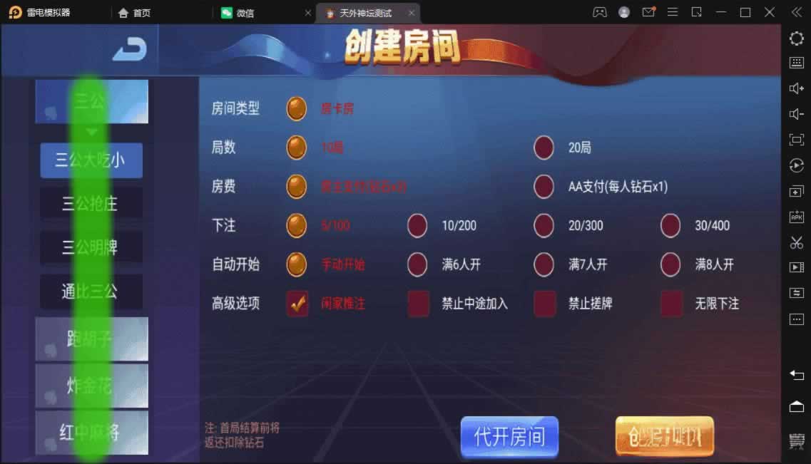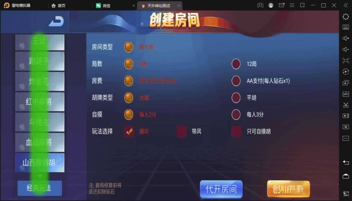 其他游戏就是:牛妞,跑得快,三公,跑胡子,扎鑫花,点子牛,红中麻酱,斗地猪,血战麻酱,山西推倒胡。