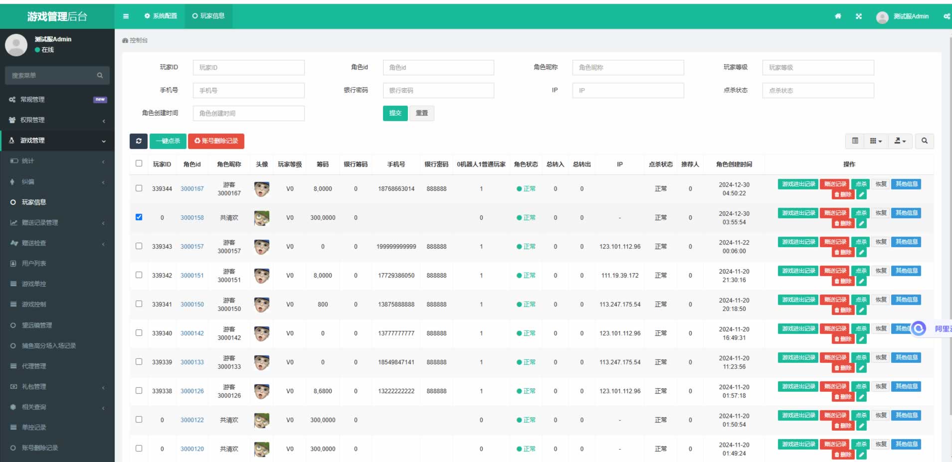 该源码是服务器完整打包下来的,绝对的运营货,不是外面的垃圾货,那种根本搭建不起来,不是少文件就是客户端有盾。本站发布的这套源码,点杀,房间控制,牌型控制均没问题。