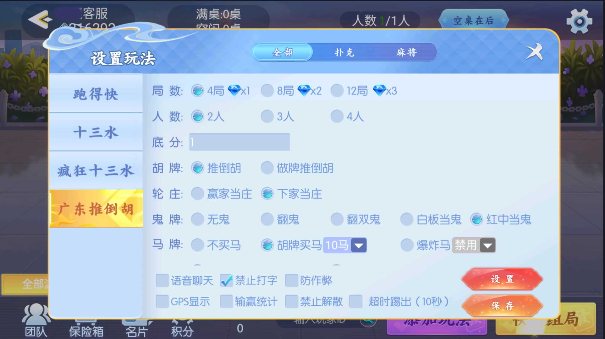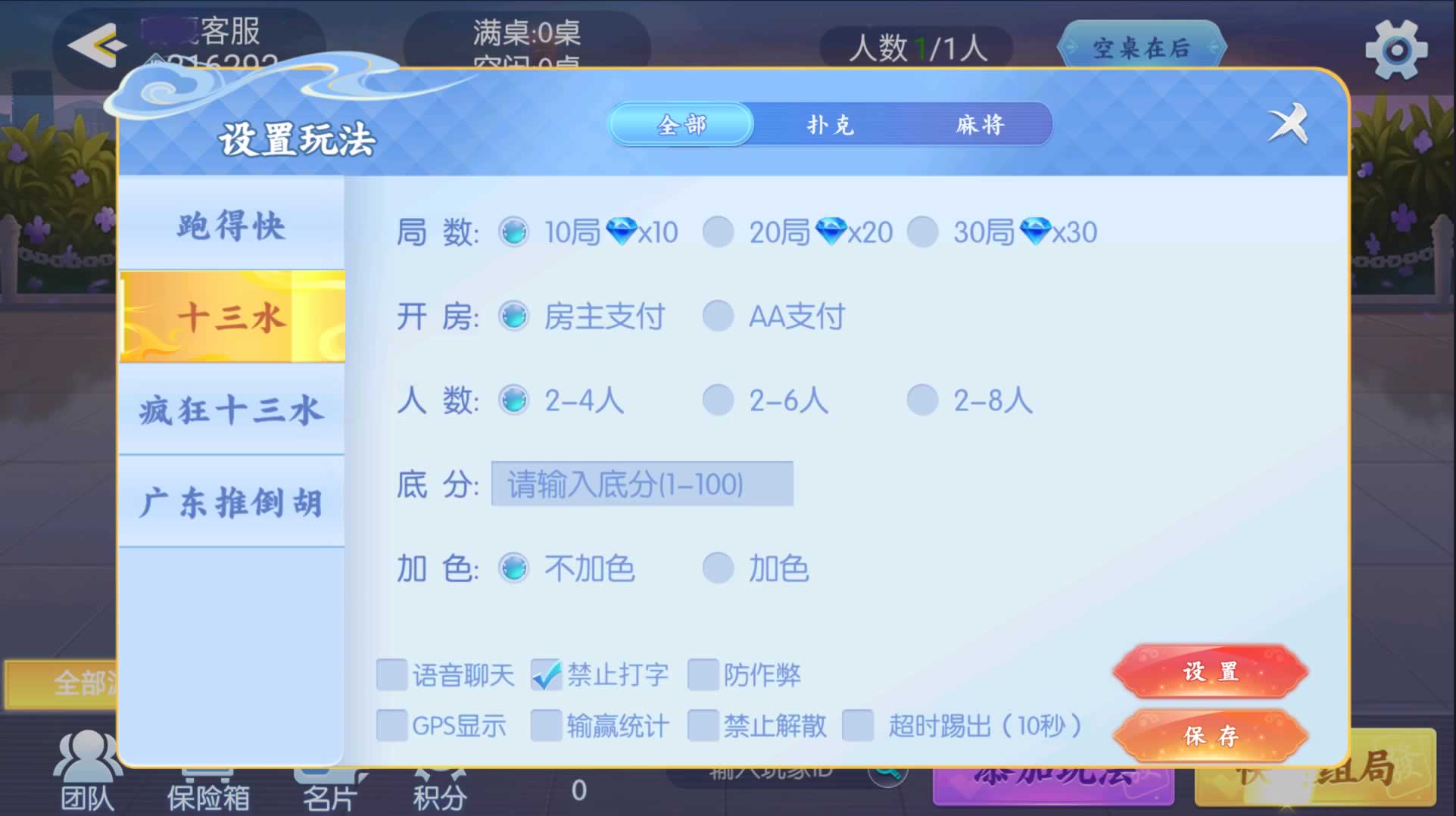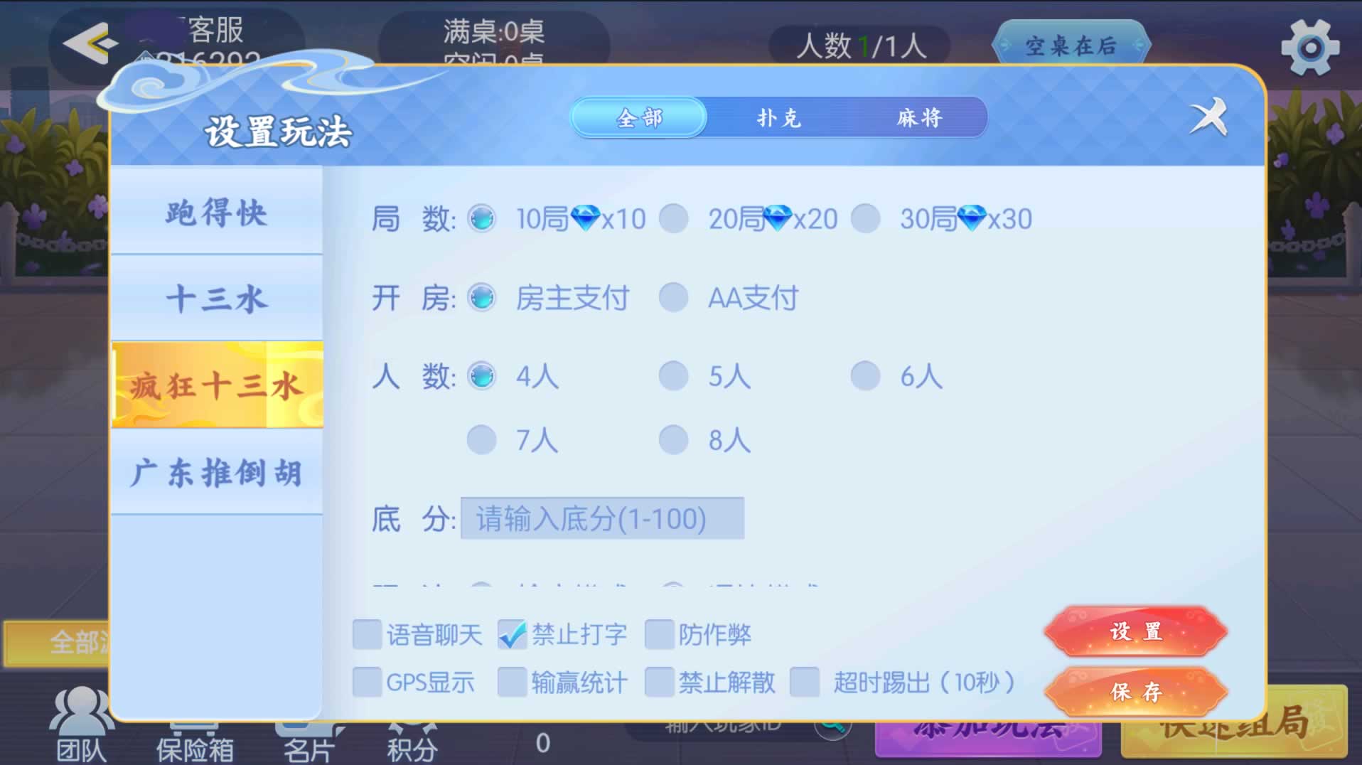 安卓+苹果端+机器人只有4个玩法,2种十三水 ,广东推到胡 ,跑得快这4个游戏。