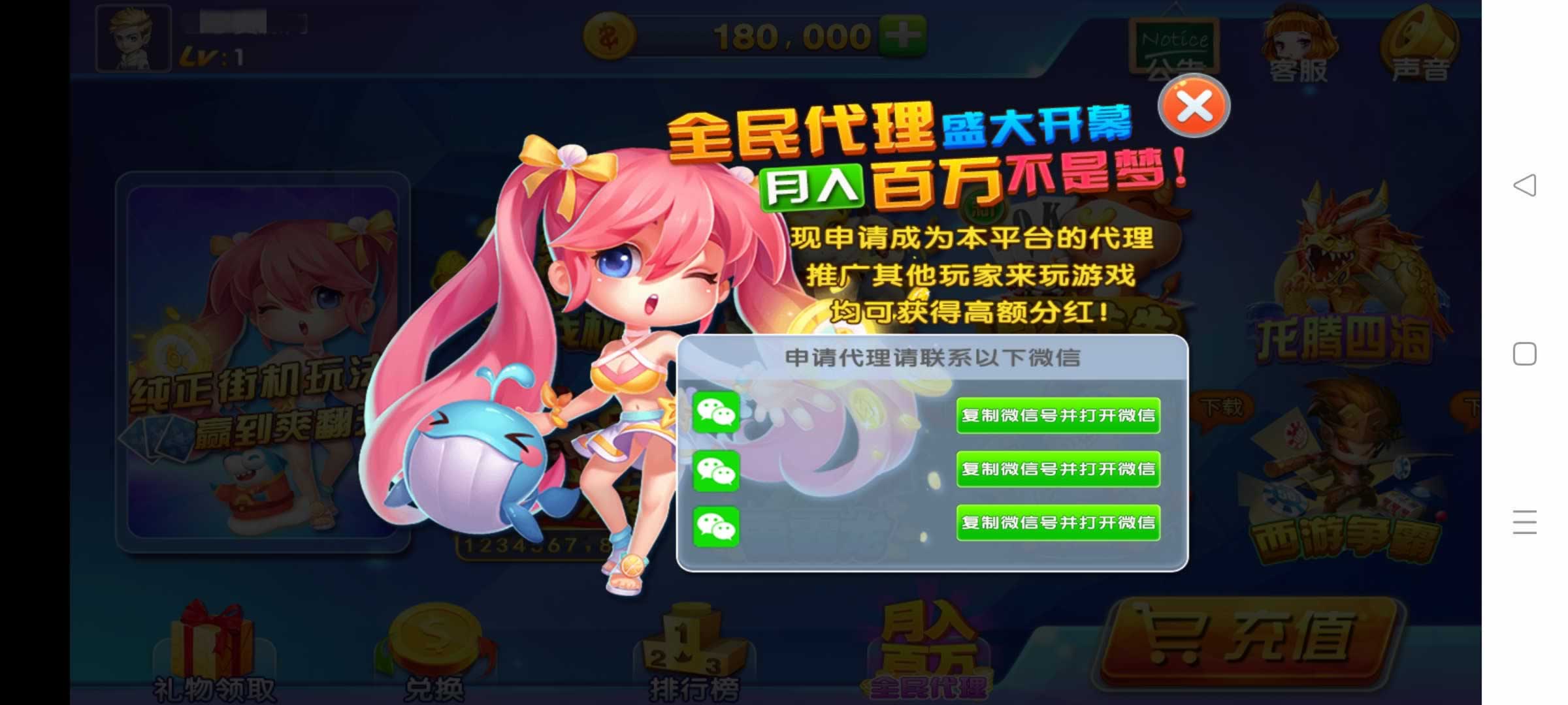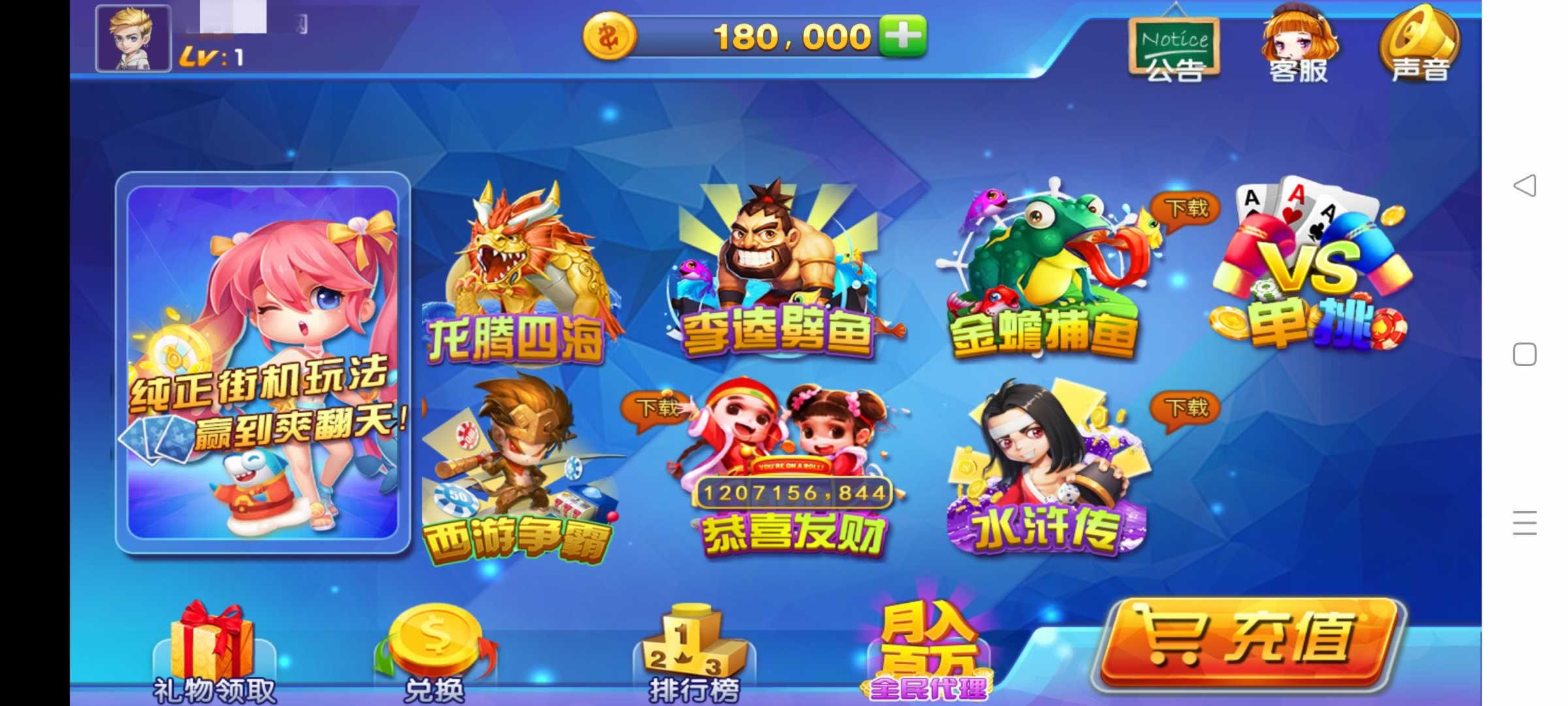 包含游戏:海王3,龙虎争霸,摇钱树,龙太子,百人妞妞,龙腾四海,财神发发发,雷霸龙,海王2,西游争霸,李逵劈鱼,恭喜发财,金蟾捕鱼,单挑,水浒传。
