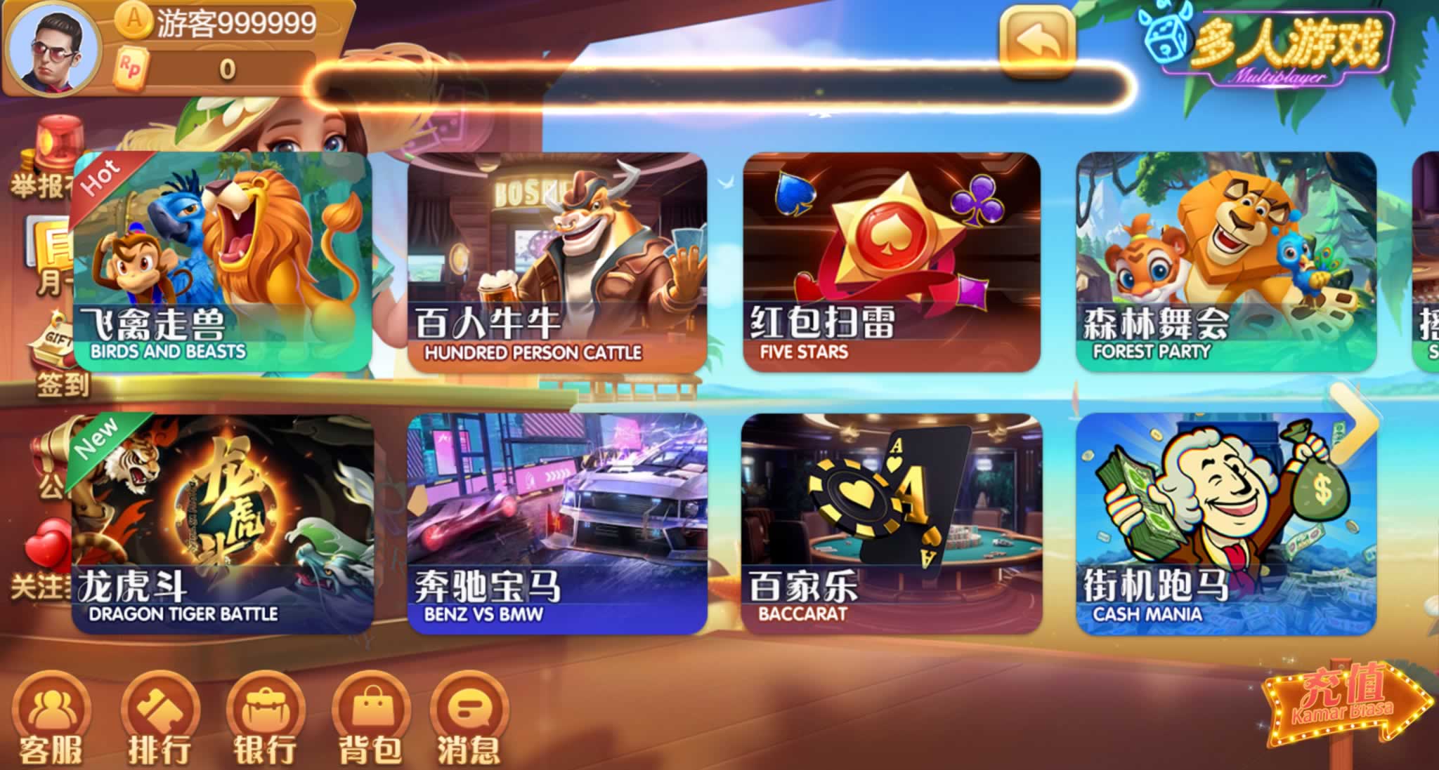 多人游戏:百人牛牛,龙虎斗,森林舞会(二代新),红包扫雷,百家乐,飞禽走兽,奔驰宝马,街机跑马,摇一摇