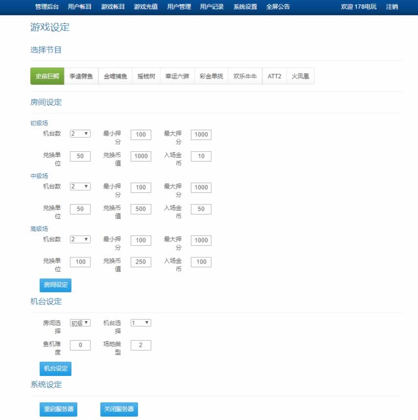 运营街机捕鱼游戏娱乐方面首选,后台功能完美,控制端强大,UI设计简洁,178电玩城分为三种类型游戏,其中有电玩、捕鱼、纸牌。