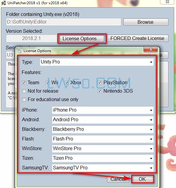 ③ 设置License Options(授权配置),授权配置的具体设置参照上图,设置完成后选OK保存授权配置。