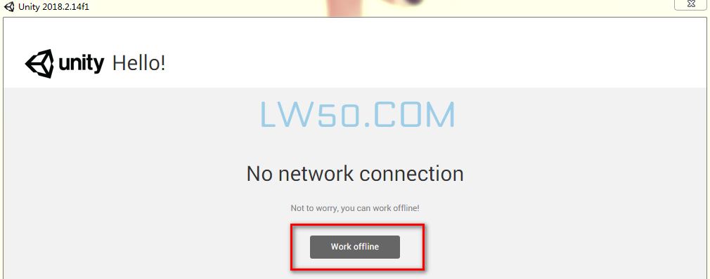 ⑦ 打开Unity程序,选择Work offine(离线工作)。
