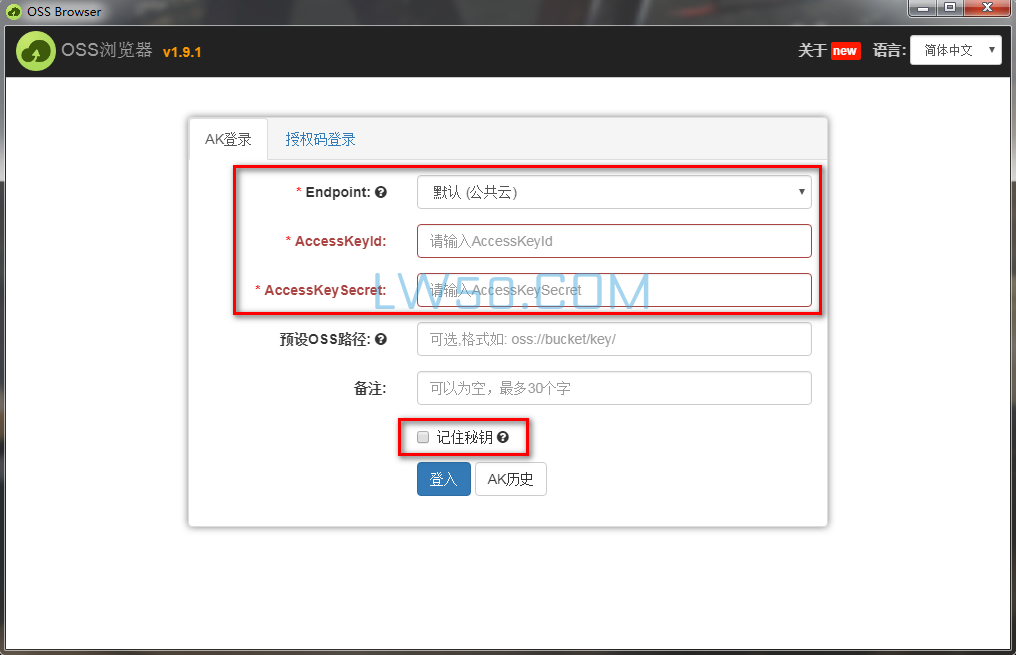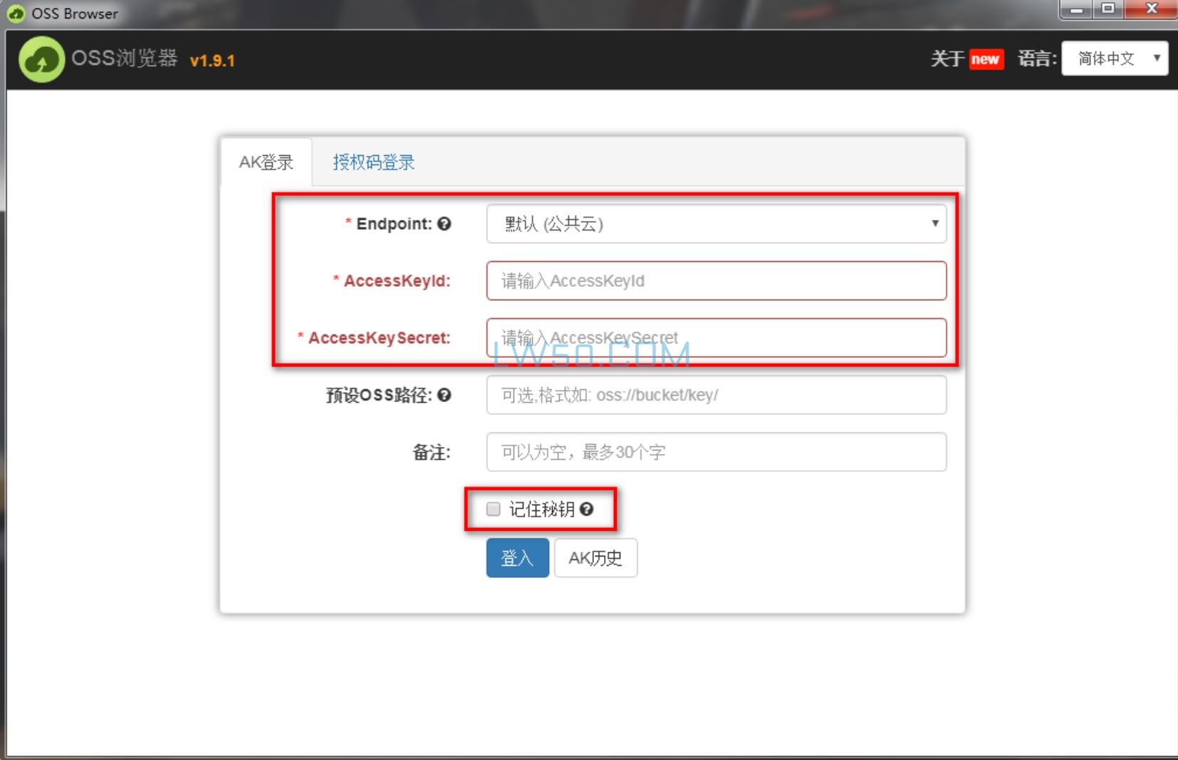 Oss Browser工具存放位置:工具\客户端工具\OssBrowser