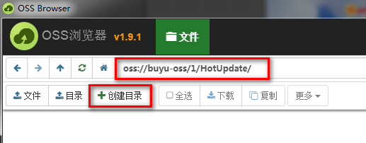 ② 打开OSS路径并创建新目录(HotUpdate),如上图。
