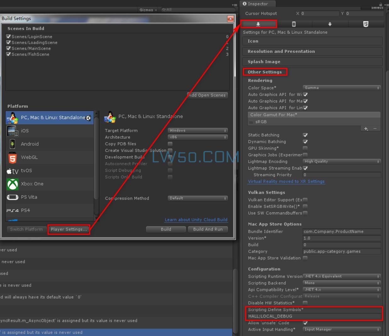 ② 在进行不同运行平台的热更新资源导出时,要先进行宏定义设置。