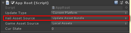 Local Assets(本地资源更新):在编辑器调试时,可以使用本地资源加载,打包时要改回Update Asset Bundle(资源OSS热更新)。