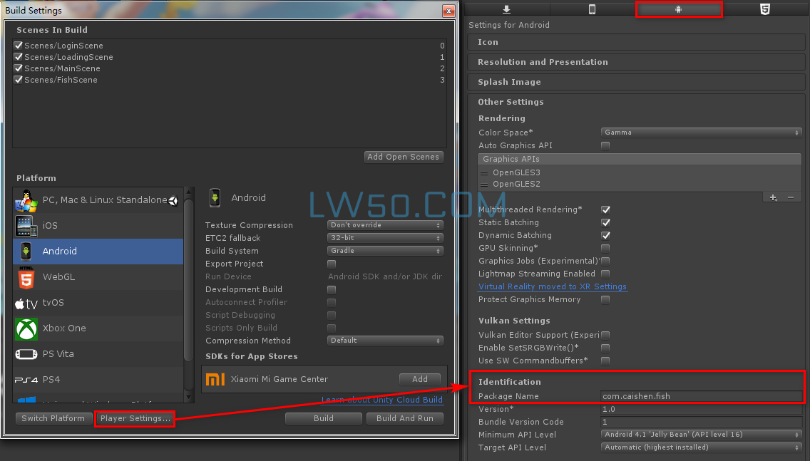 注意:安卓包的名称要与Unity工程中设置的包名保持一致。