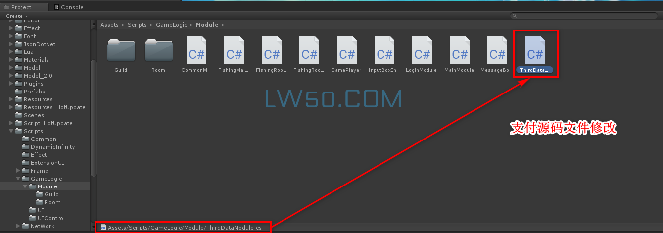 支付源码文件修改,在大厅工程文件中的ThirdDataModule.cs修改。