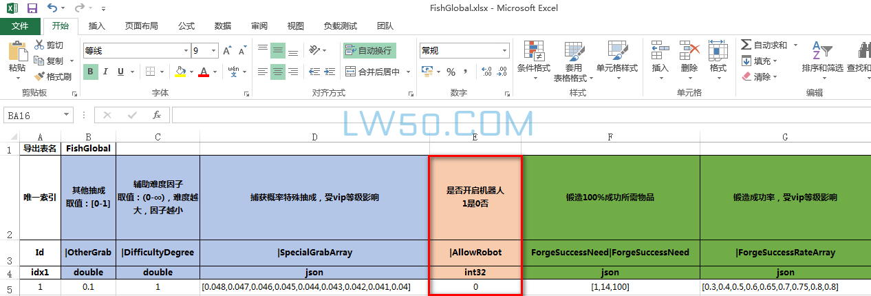 例如捕鱼机器人开关是在FishGlobal.xlsx表里有一个字段来控制。查表:是否开启机器人,1为是,0为否。
