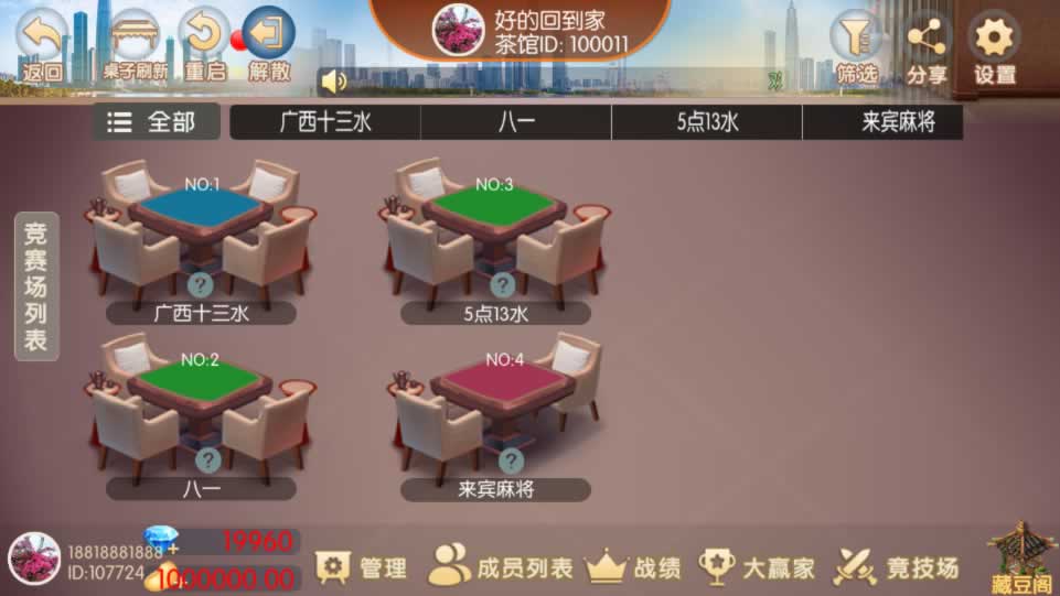 网狐系列房卡端-广西棋牌4子游戏,广西十三水+柳州麻将+来宾麻将+八一字牌完整版。