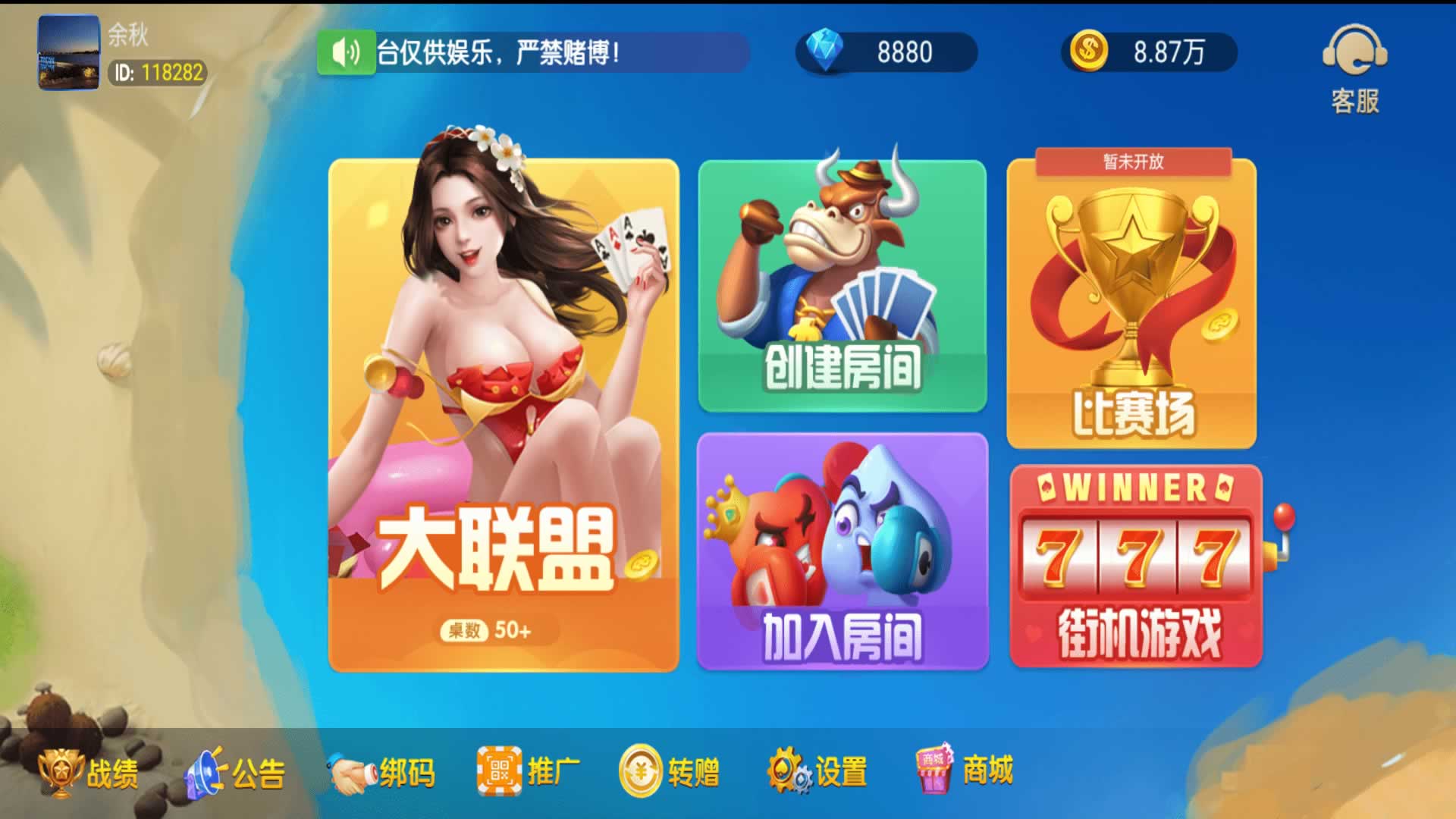 为加速网站,所有图片进行了优化处理,所以并不是高清,实际中游戏与网站本身画面是高清的,部分源码中打包有高清展示图片。棋牌源码网 » P564【奉天大联盟】五游系列奉天大联盟金币房卡双模式牛王带陪玩机器人带控+视频教程